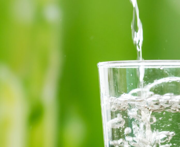 Macro shot of pouring water into a glass